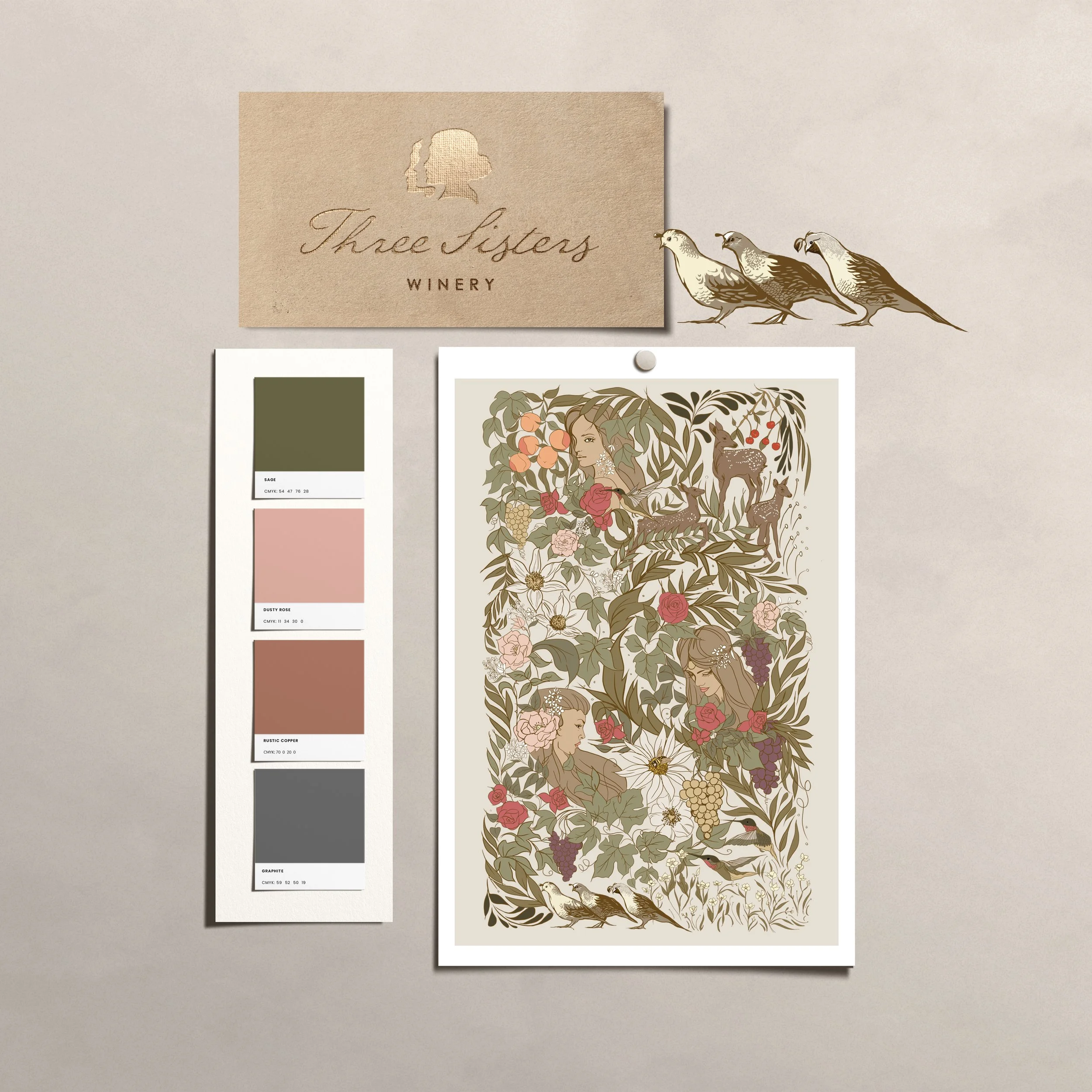 This collection of work, spanning nearly a decade, is one of the most rewarding projects of my career. It has been an honor to help shape the visual identity of Three Sisters Winery, blending art, storytelling, and design into a brand that resonates deeply with its family roots.
