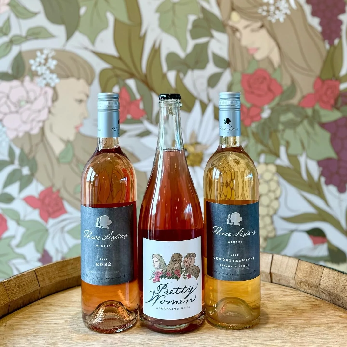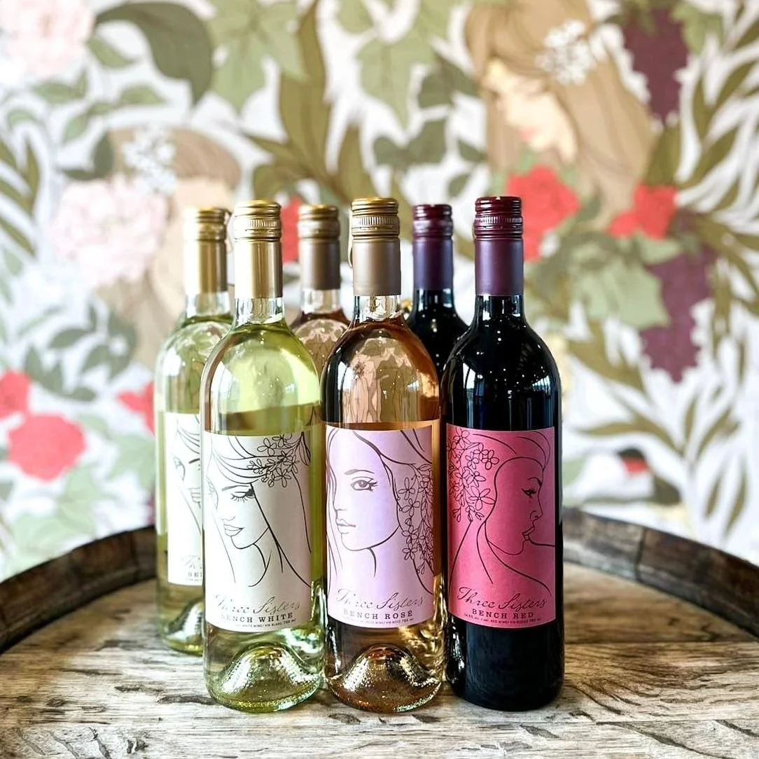 The Three Sisters Winery holds a special significance for its owners, Matthew and Rebecca. Both come from families with three sisters—Matthew as the brother to three, and Rebecca as the youngest of three sisters. This familial bond became the heart of the brand’s identity, leading to the creation of a series of paintings that capture the essence of their story.